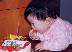 おもしろかったのは、亜希の前にお誕生日のケーキを置いたら 「食べるっ!」とばかりに突進して行って・・・
