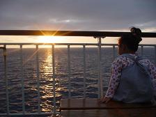 日没を船上から見ました。夏なのに とても寒かった!