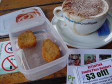 ↑ Fish and Chips 6 $ 95 だったかな? ¥590 カプチーノ 3$ \255