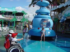 上からも 水が 発射され 地面からも じょ〜じょ〜〜と飛び出てきます。ここ道路の延長ですけど…。