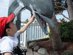 こうして 見ていたら 近くに来てくれます。 とてもカワイイ♪ 幸希はイルカが大好きです。嬉しいのよ。