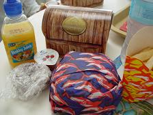 キッズ・ミールと ママにバ〜ガ〜。キッズ・ミールは まるで 宝箱のよう♪ 画像 左。 ジュースは持参しました。しかし 蓋を