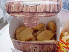 開けると… 画像 右… ポテトとナゲットが まるで 放り込んであるのみ。爆… でも 幸希は ポテトが気に入っているようでした。