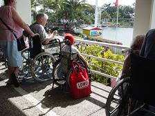 ↑ 車椅子鑑賞コーナーから 水上スキーを見ています。 モーター・ボートに引かれて ジャンプしたり