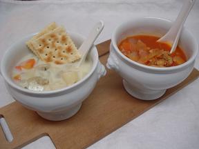 チャウダーというのは 日本語では 「寄せ鍋」というところでしょうか。スープとシチューの中間的な存在で、2種類あります。