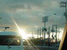 家に向かって帰宅中、こんなに 綺麗な光が・・・きっといい結果だと祈ろう〜 171号線の西宮体育館の横、もうすぐおうちだよ