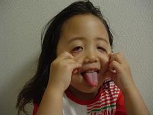 台風の影響か すげ〜 風。蒸し暑く、雨が降るかな 降らんかな・・・そんな中、またもや 幸希が ごっつい「めばちこ」を