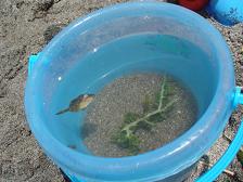 右:亜希が見つけた魚。死んでるよと言っても 「だって 目ぇ 開いてるもん!」と 聞かない。
