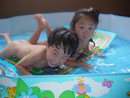 亜希を保育園に迎えに行ったら、もぬけの殻・・・誰もおらん・・・なんと あまりの暑さにプールに入っていた。すごいな〜と思った。