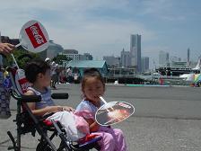 団扇をもらう。しかし 暑い! 山下公園のほうには マンションもあるし、クラシックなカンジのホテル