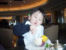 の中で アイスを食べる幸希。値段も 結構高かった… 後で 「夜は お子様禁制」と知った… 知ってたら 行かんかったのに…涙