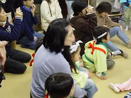 本当は前の公園で 手作りおみこしも 担ぐはずだったけど、雨で 室内での活動…人口密度高かった…その上 幸希を抱いての活動 & 床での昼食… ものすごい キツかった。夫は出張でおらん…