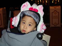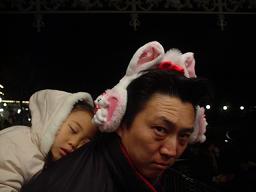 ↓ 電飾パレードが終わったら 即寝てしまった ・・・・まだ 花火があると言うのに・・・花火を待つ間、 ベンチで座っていたら、他の車椅子の人たち
