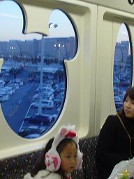 なんとなく 売店に行き、ば〜ばに マリーちゃんの耳あてを買ってもらって ミッキー電車に乗ってホテルに