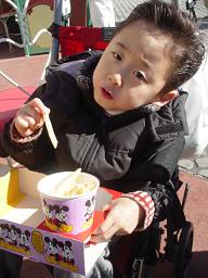 亜希がどうしても 欲しいのが ポップ・コーン。ここは プーさんのポップコーンスタンド・・・ポップコーンにこれだけ並ぶとは