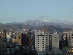 中:朝のすがすがしい 景色です。 山は 雪がうっすら・・・とても 爽やかです。