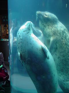 圧巻です。 あざらしは狭い間から 顔を出して呼吸をする習性と 好奇心旺盛だそうで 下から上に ひゅ〜ん♪と上がって