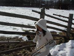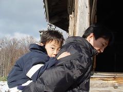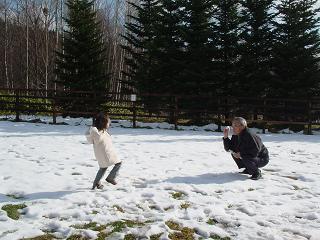 ↑ 左:待望の 「じいちゃんと 雪合戦」です。 右:雪だるまも作りました。小さい♪