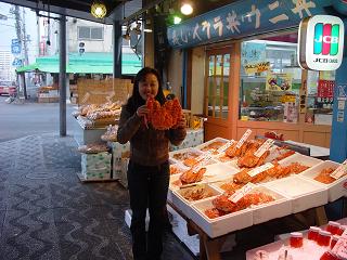 札幌に帰りました〜 はぁ〜 都会の喧騒です・・・・二条市場へ行って、お歳暮を探す。 お店の人が写してくれました。タラバガニ・・・