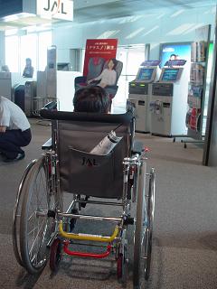 そこで ☆ JAL特製・車椅子 ☆ に乗り換える・・・サイズは多少 大きいが、ムリは言うまい・・・