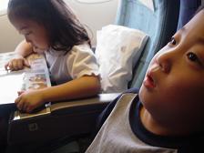 ウトウトしていたら、スチワーデスさんが 「アキちゃま☆ お手洗いは 大丈夫でございますか?」 とか 「塗り絵 お上手ですね」