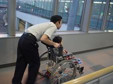 本来は 車椅子やバギーなどは 預けてしまって、飛行機会社のものを 搭乗前までは 使用するってわけ・・・