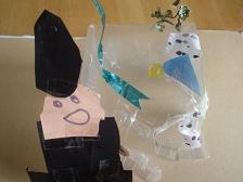 ↓ 左:ソファーの羽毛を引き抜いて 鳥を作った・・・