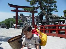 暑かった〜〜〜 あまりの暑さに境内までは 行きませんでした。>右:「俺様の 燃えるバギーに 野菜籠とか リュック。」