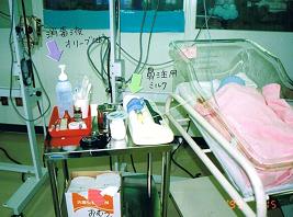 ↑ 小児病棟内にある未熟児室。大病院の NICUとは 少し違うのでしょうが… 幸希は生まれた時、どこかに搬送する予断を許さなかったので