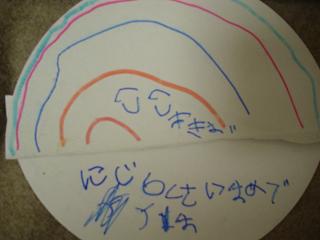↑ お祝いファックス モナリサちゃんから・・・・& 虹を描いた亜希。