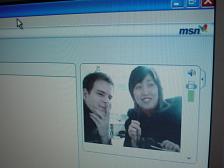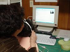 ↑左:チェコにいる ユカリちゃん・ホンザ君と映像付きチャットをしました。亜希は憧れのジャネットのマイクと同じでウレシイ〜〜♪