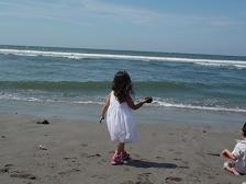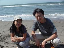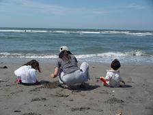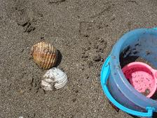 中:砂と汗と潮風で コテコテになっています。 右:貝殻を拾いました。ママも10代の頃、いつも していた♪