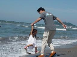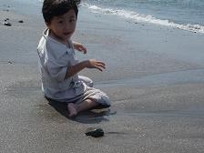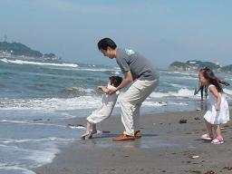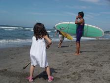 「やっぱ まずは お子さんを乗せて 波打ち際で 遊ぼう〜っと・・・」 と 気分はすっかり 岡サーファー気分の私でありました。