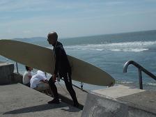 波乗りに自転車で 行ける こちらならではの風景でしょうネ。上半身 裸で こいでる 人も見ます。 (*^。^*)