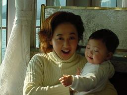 画像は 宮島に渡る船内にて。幸希2歳 亜希 10ヶ月の年末。