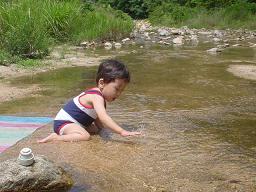せせらぎの中なら 砂があっても平気で、本当に嬉しそうに 水際で 生き生きと 遊んでいる・・・ そんな一面を発見して驚いた…。