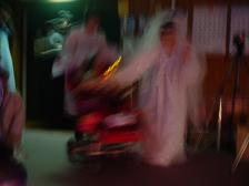 ↑左:「まだ準備中ですもの、しら〜・・・」H井田さんとみ〜ちゃん。。 「まだ 見ないでよ・・・」H崎さん。 右:ま、とにかく、ぶれてるけど ライトアップされた花道を