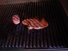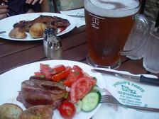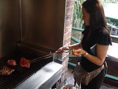 肉を購入して 自分で焼く。酒は表のバーで購入。全て キャッシュ・オン。肉は牛 フィレ。Tボーン、ラム、チキン、それに野菜が取り放題。幸希の天国だ。