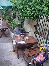 私も最初のきっかけは忘れたけど、昔からある。パブの裏庭が、ガーデンレストラン、一角に バーベキューのコーナーがあって、店先で