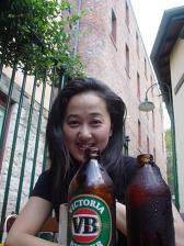 ↓今度は亜希が寝る・・・オーストラリアのビールはF-1で有名な青いボトルの、Foster's、このVB というのが有名です。安いよ。