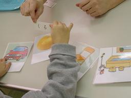 「あお」 「もも」 「いす」など 2文字の ひらがなカードは わかって 積極的に 絵カードと ひらがなカードを マッチングするのだが 「おふろ」「みかん」「くるま」など