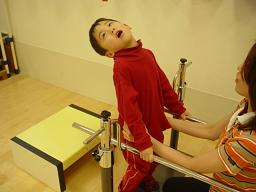 今年 初のPTの訓練。並行棒・・・後ろにわざと反り返って 「あ〜〜〜!!」と言われたら おもしろくて余計にやってしまう幸希であった。